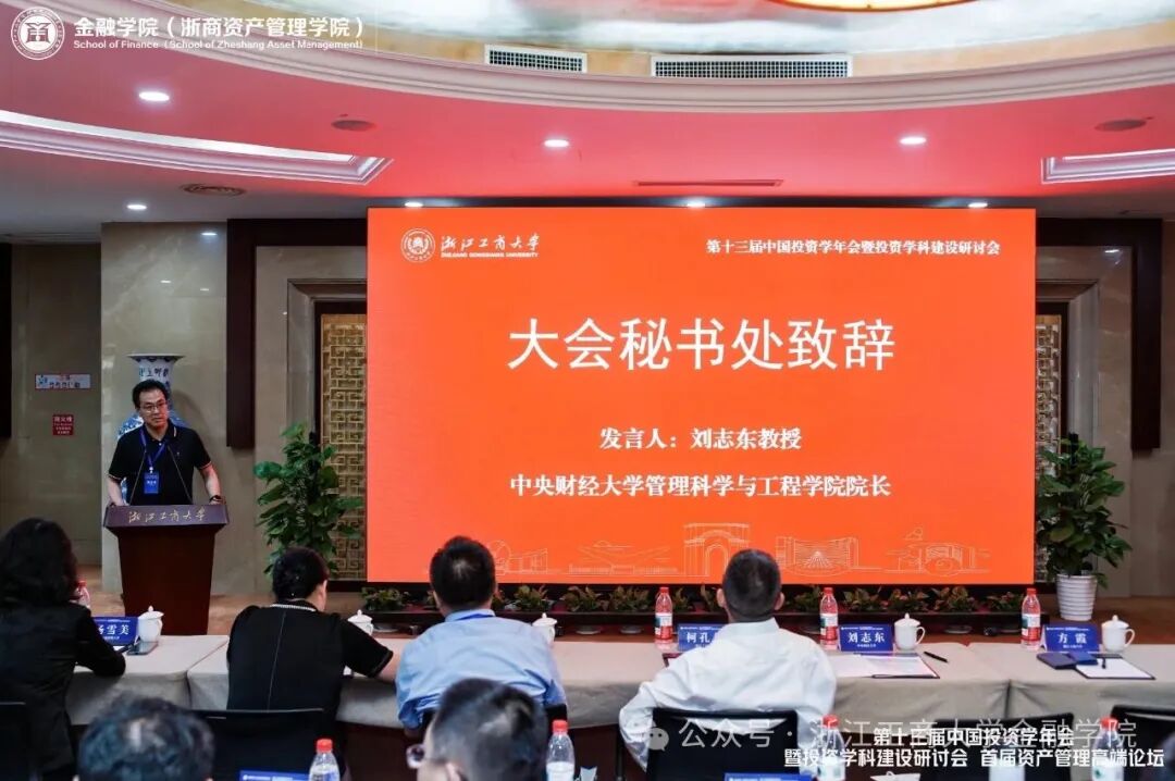 中国科学院数学与系统科学研究院研究员、中国系统工程学会理事长杨晓光教授作题为“大语言模型的理解及金融研究应用尝试”的主旨报告。杨晓光教授认为大模型是连接主义、行为主义、符号主义在大参数+大数据上的有机组合,在金融研究和金融实践中具有广泛的应用。杨晓光教授通过实际案例展示了大语言模型在金融领域应用的潜力和优势,最后介绍了在金融风险管理中如何用好大语言模型,并指出大语言模型正在改变金融生态,在投资组合优化、风险评估和管理、金融市场预测等情景具有极大的应用潜力。北京大学博雅特聘教授、北京大学汇丰商学院院长王鹏飞教授作题为“Asset Bubbles, R&D, and Endogenous Growth”的主旨报告。王鹏飞教授将特定生产率冲击和R&D活动内生融资约束融入Jones(1995)的半内生增长模型,构建一般均衡模型探讨理性泡沫对R&D投资、全要素生产率和长期经济增长的影响。通过基于企业微观数据的实证分析,王鹏飞教授的研究表明理性泡沫缓解了融资约束、优化了R&D部门的人员配置、提升了R&D部门的全要素生产率。浙商资产研究院总经理、浙江工商大学浙商资产管理学院副院长冯毅博士作题为“校企共建新模式——浙商资产管理学院发展建设思路”的主旨报告。冯毅博士指出,在我国已经成为世界第二大资产管理在岸市场,资产管理行业对复合型人才提出了迫切需求,亟需一批投资学+法学、投资学+大数据处理等多学科背景的高端资产管理人才。为此,浙江工商大学金融学院与浙商资产依托投资学国家一流专业建设点,共建金融学院(浙商资产管理学院),设立投资学专业(资产管理创新班),顺利完成2023、2024年两年投资学(资产管理创新班)本科生和投资学(资产管理方向)硕士研究生的招生工作。最后,冯毅博士介绍了浙江工商大学资产管理人才培养的特色做法。