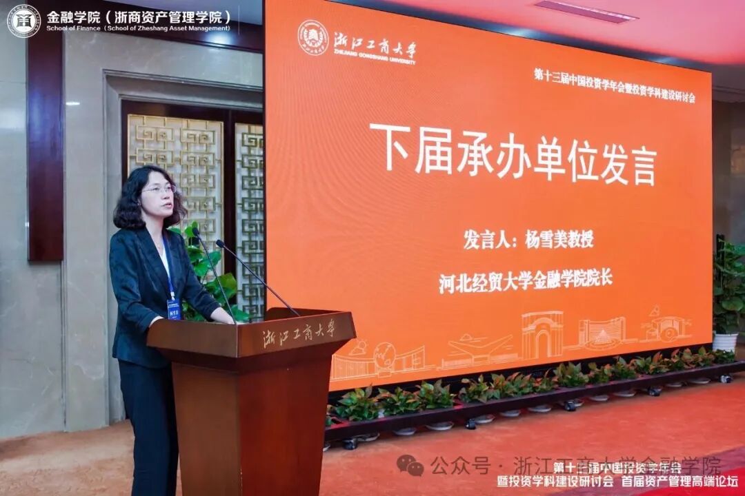 在下午的19场分论坛中,来自高校、科研机构和实务部门的专家学者们围绕资产管理与基金投资、资产管理与资产定价、ESG与资本市场、气候风险与绿色金融、气候风险与企业行为、碳定价与公司金融、商业银行与货币政策、数字金融、公司金融、养老金融、科技金融、国际金融等12个专题展开了深入的论文汇报与交流。与会专家学者围绕最新动态和前沿领域展开深入交流、气氛浓郁。闭幕式上,浙江工商大学金融学院(浙商资产管理学院)方霞院长宣布了本届年会获奖论文名单,中央财经大学管理科学与工程学院院长刘志东、河北经贸大学金融学院院长杨雪美教授、北京聚源锐思数据科技有限公司(RESSET)岳松青总经理分别为一、二、三等奖获得者颁奖。随后,杨雪美教授代表第十四届投资学年会承办方发言,刘志东教授代表大会秘书处作闭幕致辞。