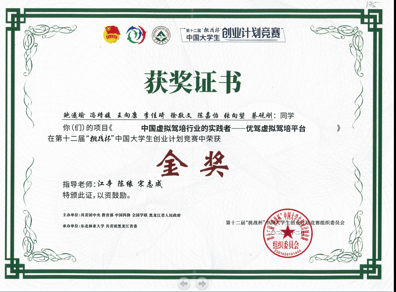 第十二届“挑战杯”中国大学生创业计划竞赛金奖