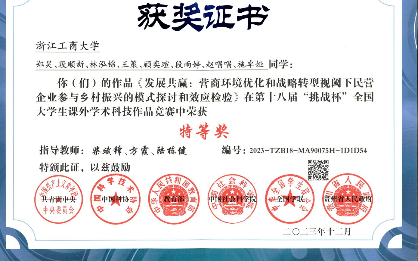 第十八届“挑战杯”全国大学生课外学术科技作品竞赛国家级特等奖