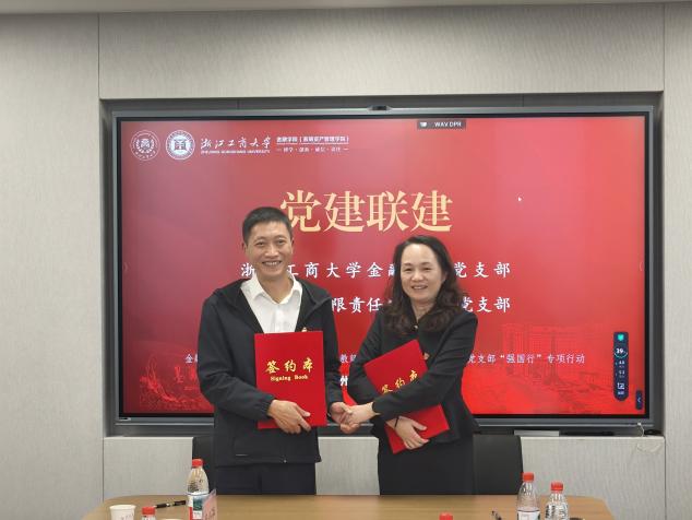 为构建"资源共享、党建共促、优势互补、协调发展"的校企联动新格局,打造产教融合党建共同体,11月6日下午,金融学院与杭银理财有限责任公司在下沙校区科创楼836会议室隆重举行党建联建签约仪式。金融学院执行院长、金融教师党支部书记方霞、投资保险教师党支部书记张少军、杭银理财首席合规官、第四党支部书记王秀祥及双方党支部主要成员共同出席会议,会议由学院党委书记慕兴宏主持。