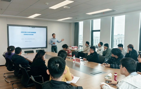 2025年11月12日下午,浙江工商大学金融学院(浙商资产管理学院)在科创大楼836成功举办第263期钱塘金融强国学术论坛。本期学术论坛邀请到了四川大学经济学院助理教授佘楷文老师,为学院师生带来一场题为“金融五篇大文章与金融监管:政策解读与科研选题”的学术报告。金融学院副院长万谍教授主持了本次会议,全院众多师生参加了学术交流。