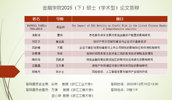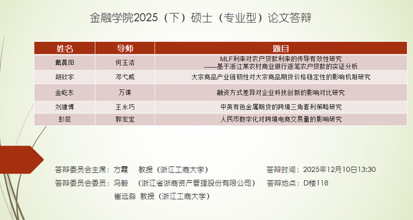 金融学院(浙商资产管理学院)2025年(下)硕士论文答辩安排