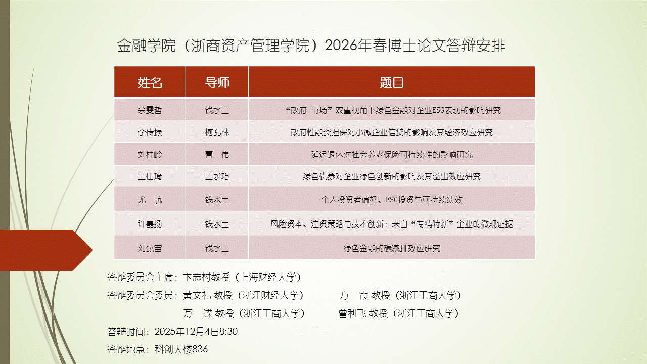 金融学院(浙商资产管理学院)博士论文答辩安排