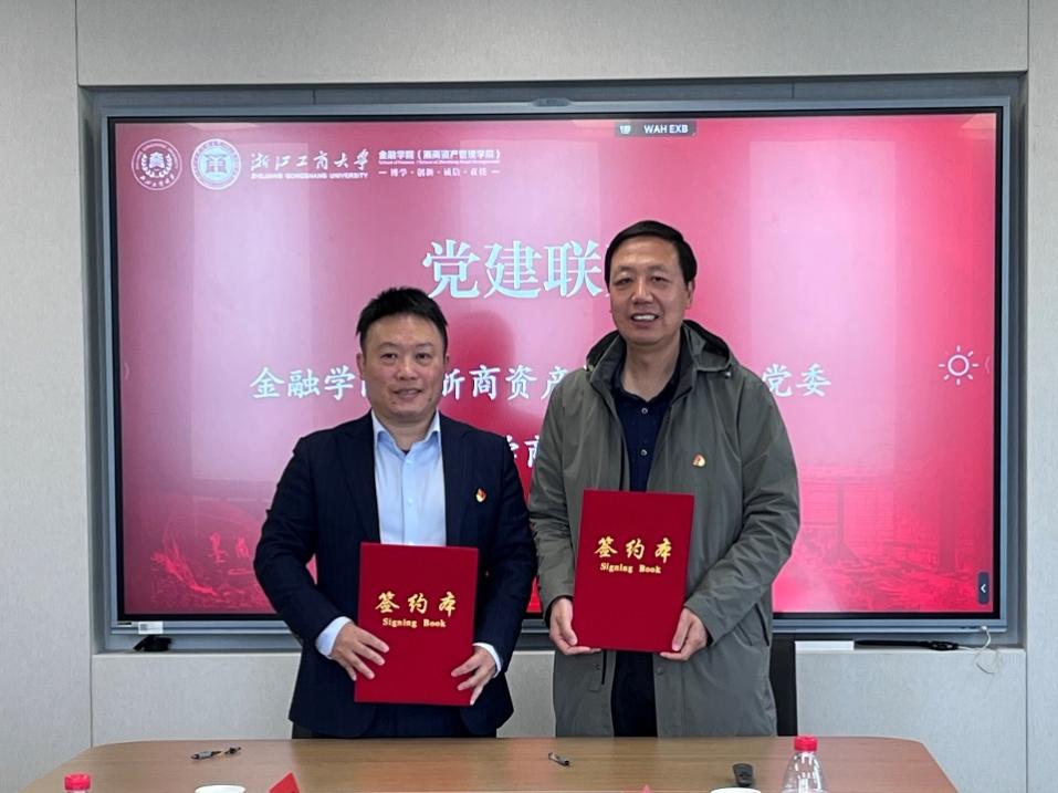 2025年12月5日,我院与温州大学商学院在下沙校区联合举办党建共建交流活动。金融学院党委书记慕兴宏、温州大学商学院党委书记唐华出席活动,金融学院金融教师党支部副书记兼金融系主任韦宏耀、温州大学商学院金融工程系主任林德根及相关工作人员共同参会。会议由慕兴宏主持,双方围绕新时代高校党建工作创新、党建工作标杆院系与样板支部创建、学科专业建设及复合型人才培养等议题展开深入研讨,并签署共建协议,正式达成“党建共建”联合体合作框架。