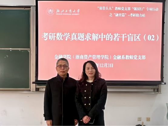 为深入贯彻落实教育部、省委教育工委关于高校“双带头人”培育工作的安排部署和“双带头人”教师党支部书记“强国行”专项行动要求,充分发挥高校“双带头人”的示范引领作用,完善人才自主培养机制,提升学院人才素质培养质量,打造卓越金融人才队伍。金融教师党支部邀请江涛教授作题为“考研数学真题求解中的若干盲区”的讲座,讲座于12月3日下午在D229教室举行,执行院长方霞、学院辅导员周露洁参加了此次专项活动,活动由周露洁主持。
