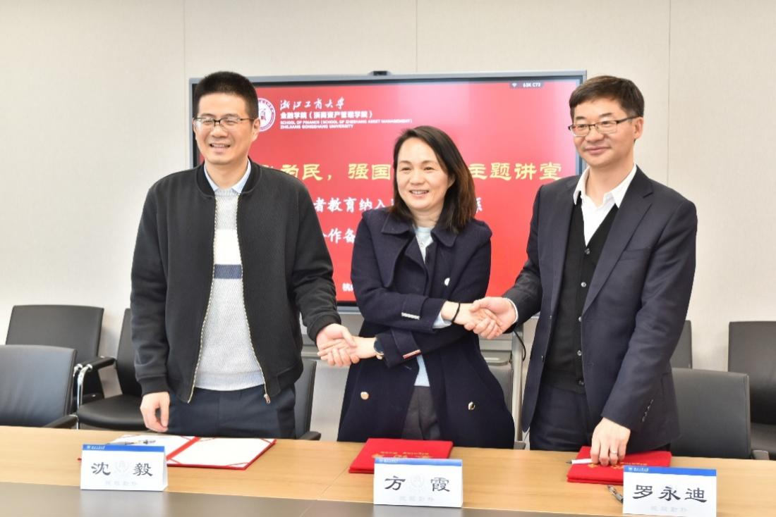 签署三方备忘录,构建产教融合长效机制。在浙江证监局见证下,我院与浙江省期货行业协会、信达期货有限公司签署三方合作备忘录,建立“行业+高校+机构”常态化协同机制。学院执行院长方霞、党委书记慕兴宏表示,将以此次签约为起点,深化与行业机构的战略对接,推动人才培养、专业建设等领域合作落地。浙江省期货行业协会秘书长沈毅与信达期货总经理罗永迪表示,未来将聚焦课程共建、实习直通、产学研共研等方向,打造良性互动的人才培育生态,助力行业高质量发展。